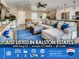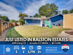 6590 Zang Circle | Arvada CO 80004 This one shows like a model and will satisfy the pickiest buyer. The main floor features an open floor concept with beautiful engineered hardwood flooring, 18'x14' family room that overlooks the newly renovated kitchen with new custom cabinetry & tiled backsplash, stainless steel KitchenAid appliances and solid surface countertops. The large primary bedroom includes a 3/4 enSuite bath + second bedroom & full bath nearby. Basement is fully finished with a bedroom #3, secondary family room or flex space for workout equipment or home office if needed + laundry room (washer/dryer included). New double-wide & energy-efficient sliding glass door so you can easily transition to your outdoor entertaining space and large and very private backyard (no neighbors behind). New carpeting/pad in bedrooms & basement + new energy-efficient Air Conditioner and newer furnace for added year-round comfort. Sewer line to city main was replaced three years ago. This home needs nothing - just move right in and start enjoying life in Arvada! Say goodbye to unpredictable Xcel Energy bills because the new SunRun Solar System helps eliminate electricity consumption and even sells back the extra power on your grid to Xcel who will credit your utility bills! The Ralston Estates neighborhood is surrounded by parks, trails and creeks - including Yankee Doodle & Ralston Valley Parks + APEX Center / Ice Arena and Skateparks, Arvada Center for the Arts and Humanities and only 10 minutes to the shops, eateries and brewpubs in Olde Town. Jump on the RTD Rail Line at 49th & Ward Rd for a quick 20-minute commute to Union Station, Coors Field, Pepsi (Ball) Center, Denver Center for the Performing Arts, Buell Theater and everything else in Downtown Denver. For those of you with little ones, Stott Elementary is a half block away and easily accessible from back gate. This beauty won't last long, so be sure to see it this weekend! Listed by Anthony Rael. For more info, 'Just Call Ants' at 303/520-3179.